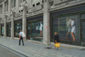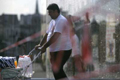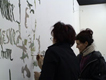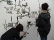 The 13 photographs are part of a performance in which the artists took turns in photographing each other while cleaning the glass sculpture Fun-house for the Children by Dan Graham. |