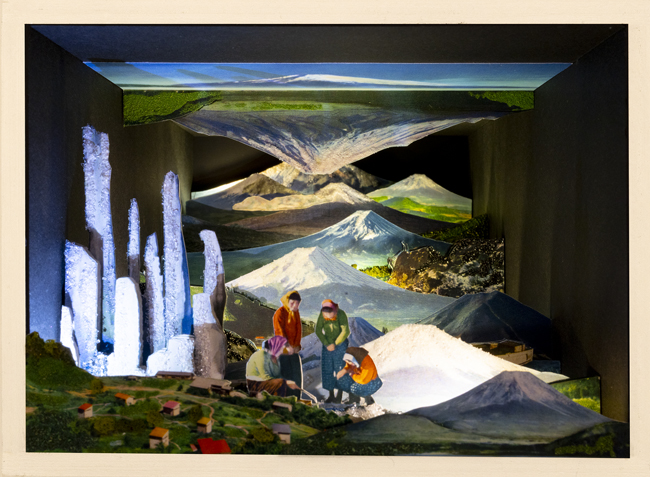 miniature dioramas using visual material created by and