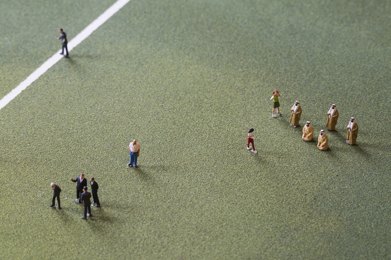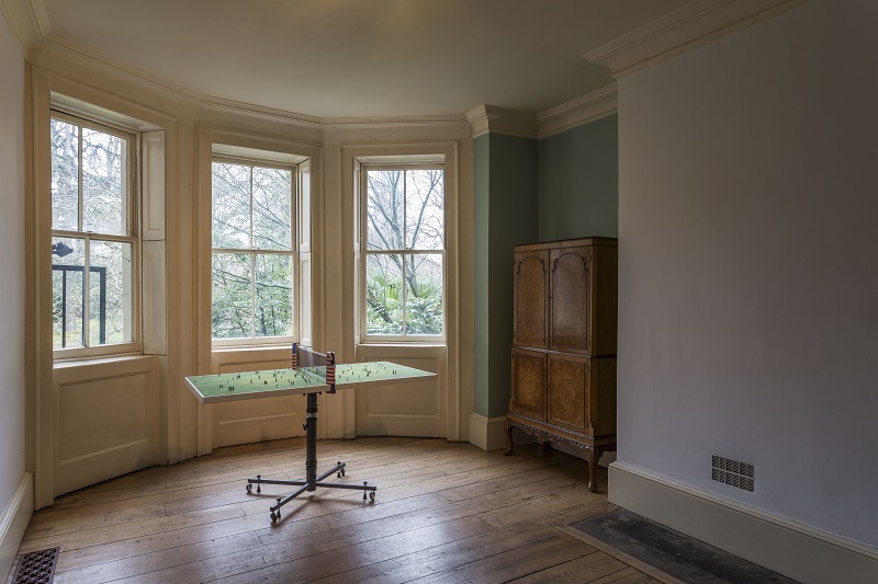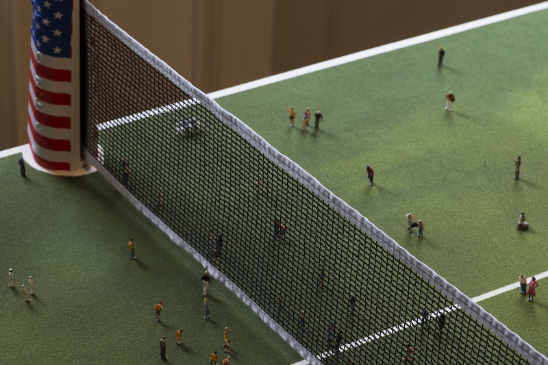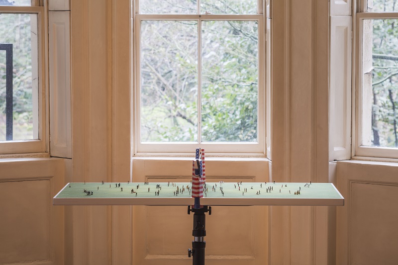 David Cotterrell The Wall 2016 1:100 hand-painted plastic figures, table tennis net, painted and floacked timber photograph by Oskar Proctor |