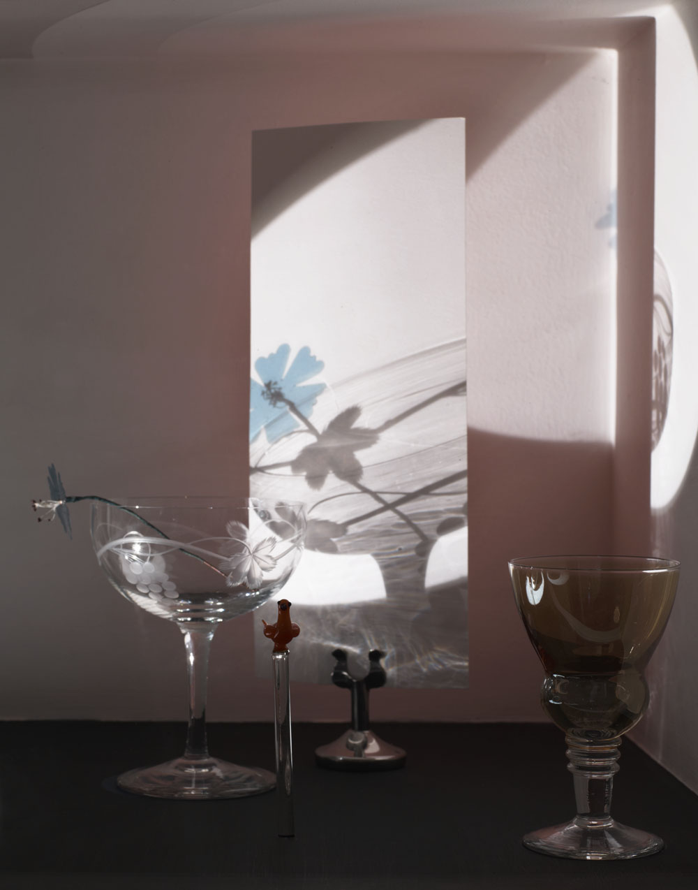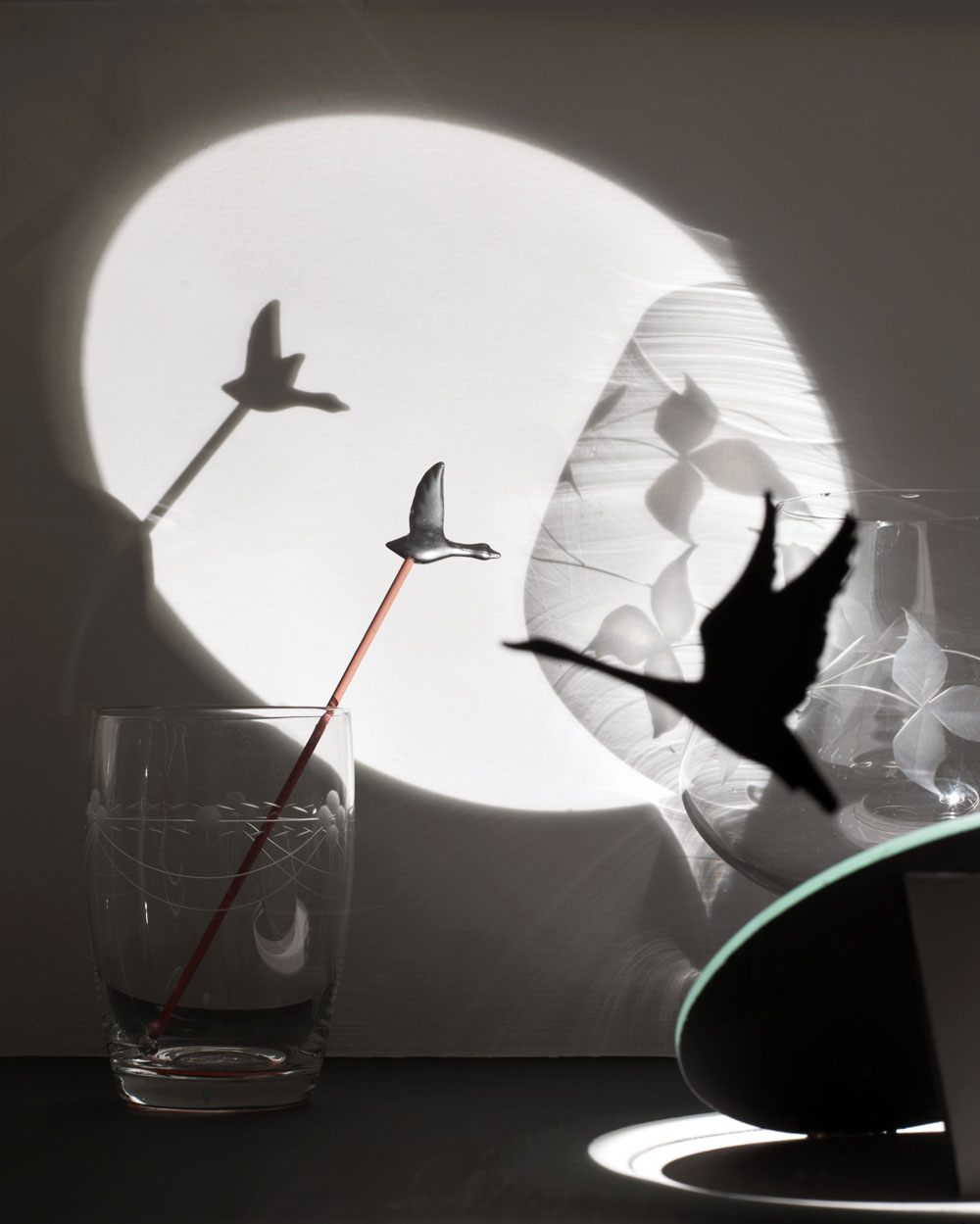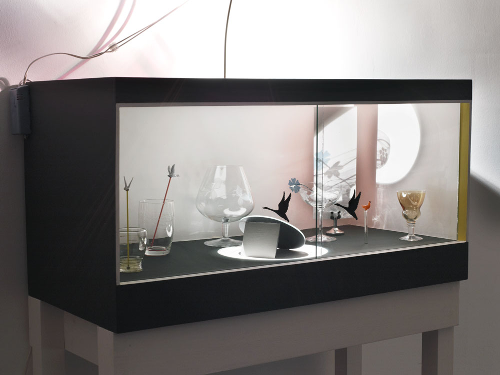 Private View: Friday 21 June 6 - 9 pm Many of the works in this show continue Helen Maurer's interest in combining light and glass to create shadows and images that change the reading of the original source. Mundane objects, glass, light and turntables are used in these kinetic installations that manipulate the space they inhabit, distort scale and disorient viewers. They rotate, they loop and absorb our sense of time. Grey Gardens references a domestic display cabinet housing etched drinking glasses. A light from above illuminates a central mirror that rotates around the box, casting a circle of reflected light through the glass objects, animating the shadows on the walls of the cabinet. The shadows here have the qualities of a pencil drawing. Glass Fountain and Rib are drinking glasses placed on small revolving turn-tables that are lit to produce moving ‘light drawings’ on the wall, reminiscent of water, smoke and biological specimens. These are then filmed and projected, their shift in scale changing their reading and associations. Upstream is a collection of short films. Glass passes across solid objects to animate them. They are filmed melting into their surroundings and appear to be sucked back into the frame. The textured ridges create a rhythm and flow to the loops, often suggestive of water or more abstract landscapes. Maurer was born in Portsmouth. She studied Fine Art and Theatre at Brighton University, before completing a PG. diploma in fine art glass at Central School and an MA in Glass at The Royal College of Art. She has exhibited internationally and collaborated on a number of joint projects with other artists, choreographers and musicians. Maurer was awarded The Jerwood Prize for Glass in 2003 for her unique approach to glass. |